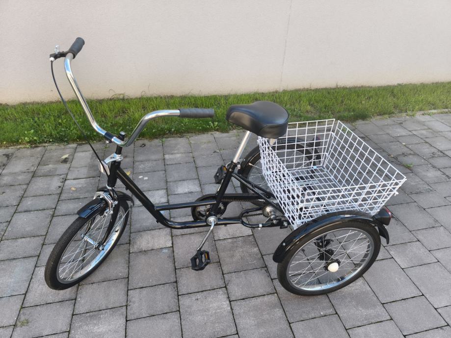 Tricikl za odrasle potpuno nov, vožen samo od trgovine do doma. Garažirani,.. stoji od kupnje, bez daljnje upotrebe. Kupljen 4.9.2025.