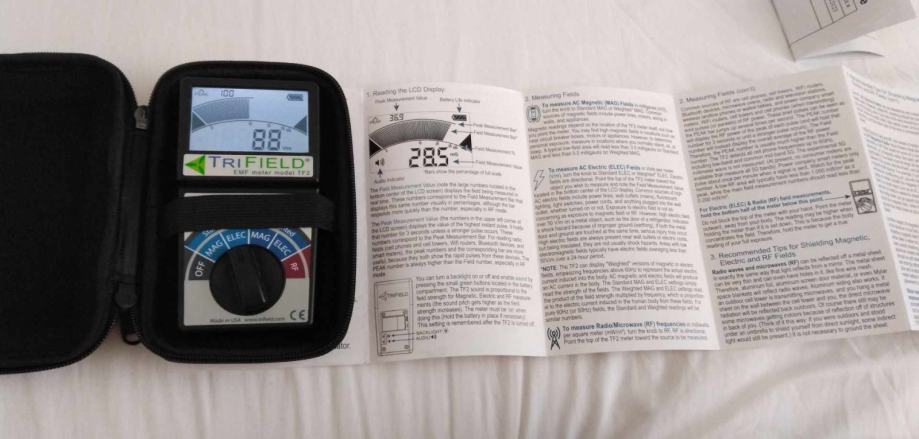 TriField EMF Meter Model TF2 je gaussmetar izmjenične struje, mjerač izmjeničnog električnog polja i mjerač gustoće radio snage u jednoj jedinici, koja kombinira sve značajke potrebne za brza i precizna mjerenja elektromagnetskih polja (EMF).