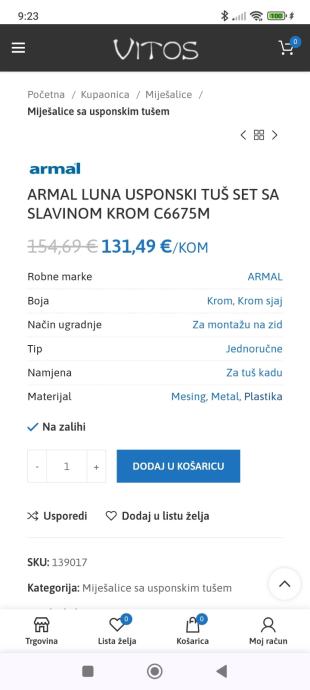 Armal usponski tuš. Komplet sa slavinom. Novo❗❗ Ne korišteno.