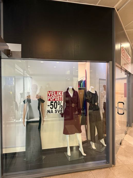 Butik se nalazi na frekventnoj lokaciji u centru City Galleria, što jamči stalan protok kupaca. Trenutno je u tijeku akcija -50% na sve, pa se kupci mogu osobno uvjeriti u posjećenost i promet.
