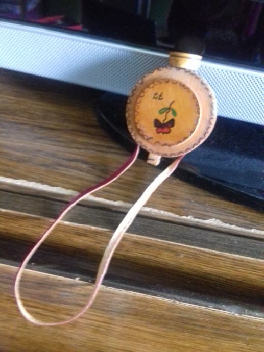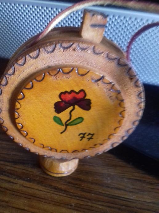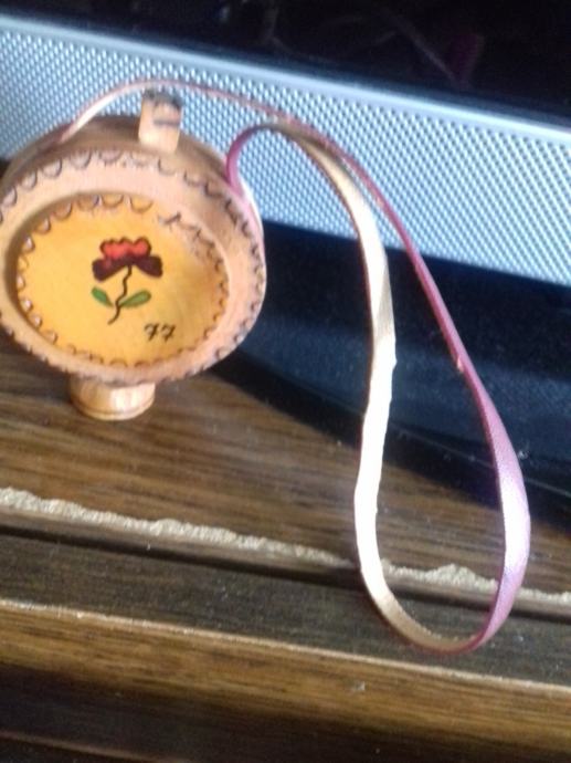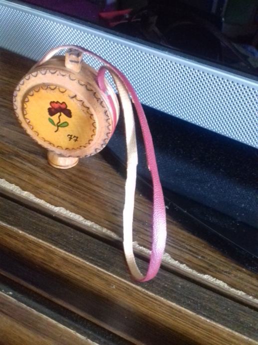 ukrasna drvena bočica sa remenom,puno drvo, promjer 8 cm,,vidi slike! mt(rega kutij ormar ivic)