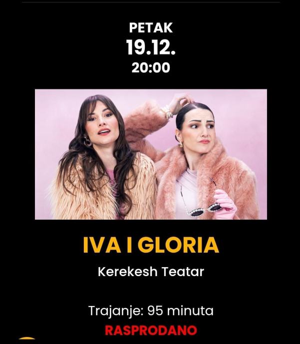 Prodajem 6 ulaznica, za 19.12. U 20h Scenoteka, predstava IVA & GLORIA