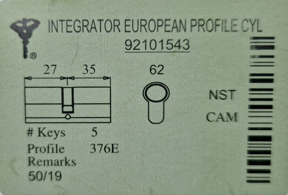 cilindar Europrofila visoke sigurnosti za protuprovalna vrata, sa karticom za izradu rezervnih ključeva.