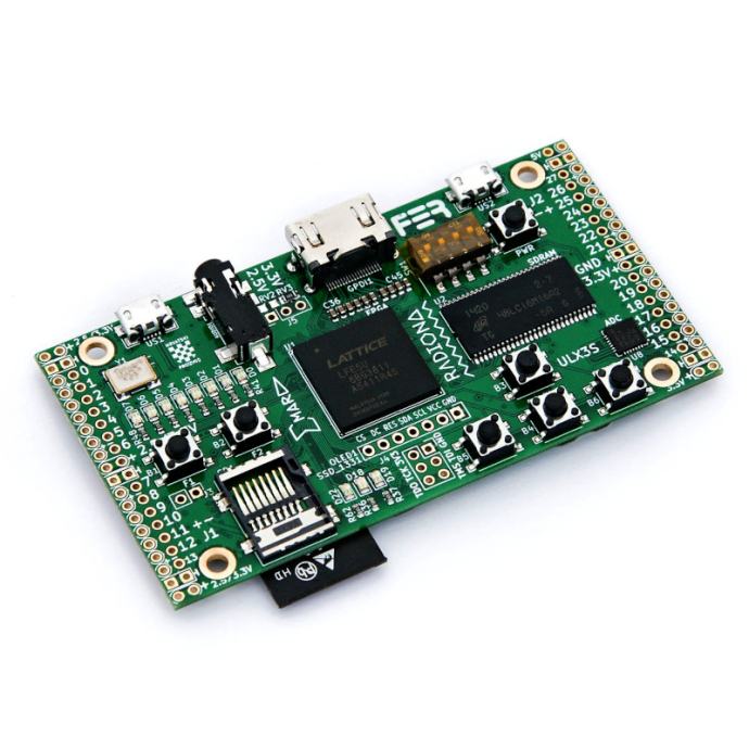 ULX3S je open source kompaktna, robusna i pristupačna FPGA ploča opremljena uravnoteženim spektrom dodatnih komponenti i proširenja. Ugrađeni periferni uređaji kao što su SDRAM, USB, digitalni video izlaz, FM/ASK antena, ADC i DAC omogućavaju audio/video obradu i sintezu signala, kontrolu motora ili SDR. Ako tek počinjete s FPGA-om, možete koristiti ULX3S kao izuzetno moćni Arduino i programirati ga koristeći Arduino IDE.