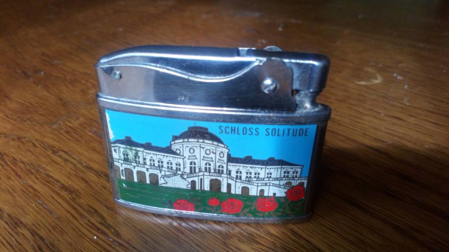 Stari, prelijepi i jako neobican upaljac na benzin marke SCHLOSS SOLITUDE. Potpuno je ispravan. Samo dodati benzin i pali. Sa onisom cete ga nositi. Zgodan je, tanak i lagan. Zanimljiv, rijedak i ispravan predmet za samo 100 kn!