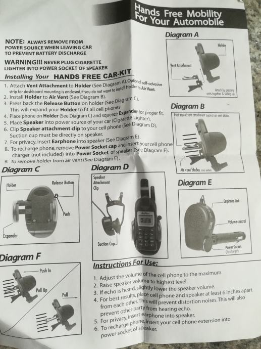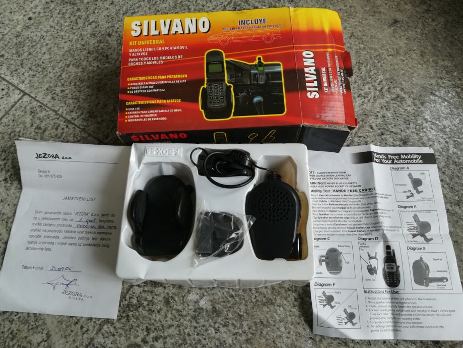 Nov nekoristen, prikljucak na upaljac od automobila sa mikrofonom zvucnikom slusalicom i drzacom za sam uredaj