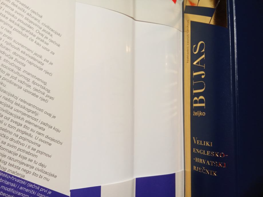 Veliki hrvatsko-engleski rječnik, Bujas, 2001., tvrdi uvez, u potpunosti očuvan, bez ikakvih oštećenja.
