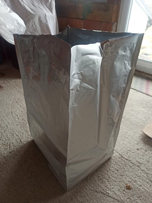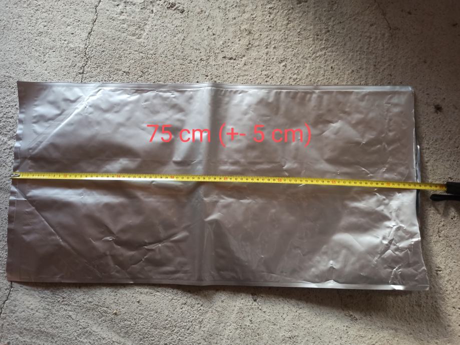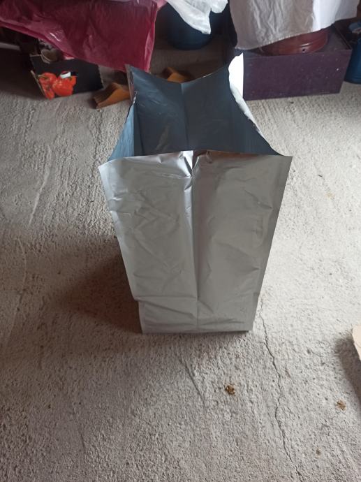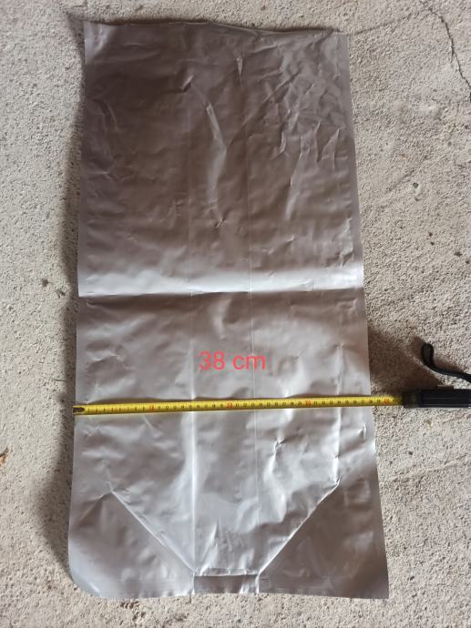 - Aluminijske (alu) vreće. Dimenzije: 75 cm (+-5 cm) x 28.5 cm x 38 cm. Komad 0.5€ ili 1€ za tri komada (0.33€ komad). Jednom korištene. Na veće količine (20 komada i više) ide četiri komada za 1€ (0.25€ komad).