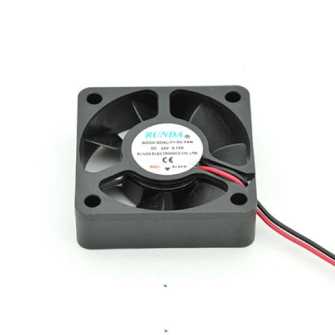 Ventilator 24V 0.1A, 6500 RPM, glasnoća 35 dBa, protok zraka 19.5 CFM, dimenzije 50x50x15 mm.