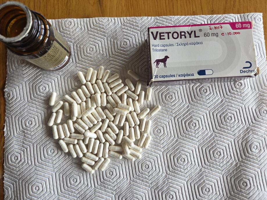 Prodajem Vetoryl tablete za psa sa Cushing sindromom, jedna cijela kutija od 60mg, te 90 kom razvaganih na 30mg u apoteci,dakle gotovo 3 kutije. Cijena 160 eura. Rok trajanja 6/2026. Nasa pesica je na zalost uginula,a taman smo obnovili zalihu :(