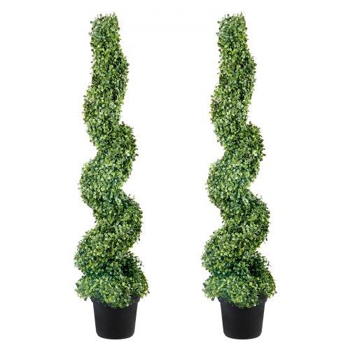 VEVOR 2 Stk. Künstlicher Buchsbaum Turm Formschnitt Spirale Kunstpflanze 122cm hoch Dekopflanze Grüne Plastikpflanze aus PE Eisen Formschnittpflanzen inkl. 10 Stk. Ersatzblätter
