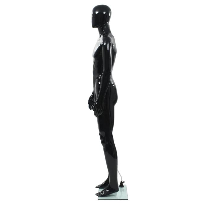 Ova muška lutka za izlog pune veličine sa staklenim postoljem i premazom od boje visokog sjaja može se upotrebljavati za izlaganje odjeće, perika ili cipela u izlozima trgovina.