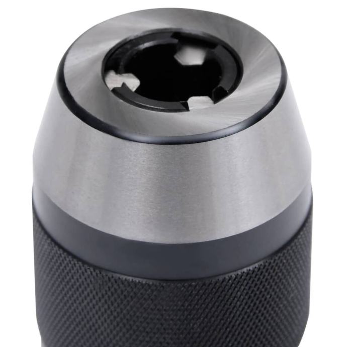 Ova stezna glava za svrdla napravljena je od čelika otpornog na toplinu s velikom tvrdoćom, visokom preciznošću i otpornošću na koroziju. Dizajn bez ključa te zatezanje i otpuštanje ručnom silom nude brže i lakše stezanje i odvajanje. Jedinstveni potisni ležaj pomaže u primjeni okretnog momenta ručke u veću silu stezanja.