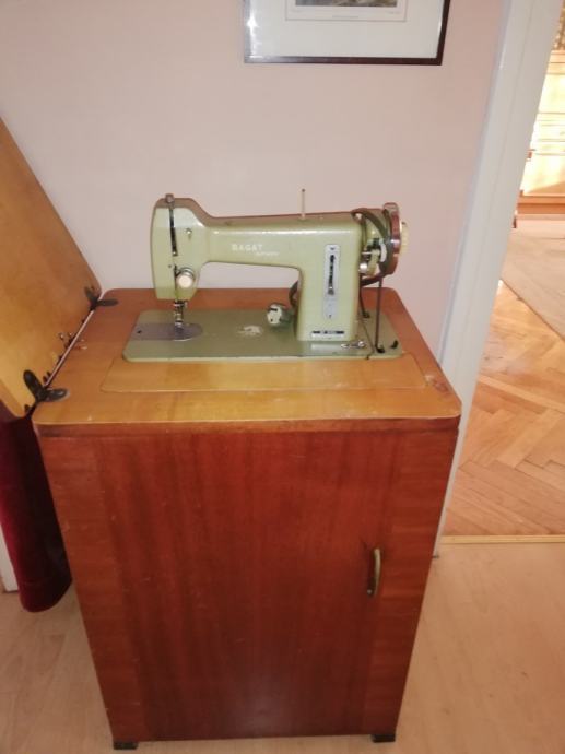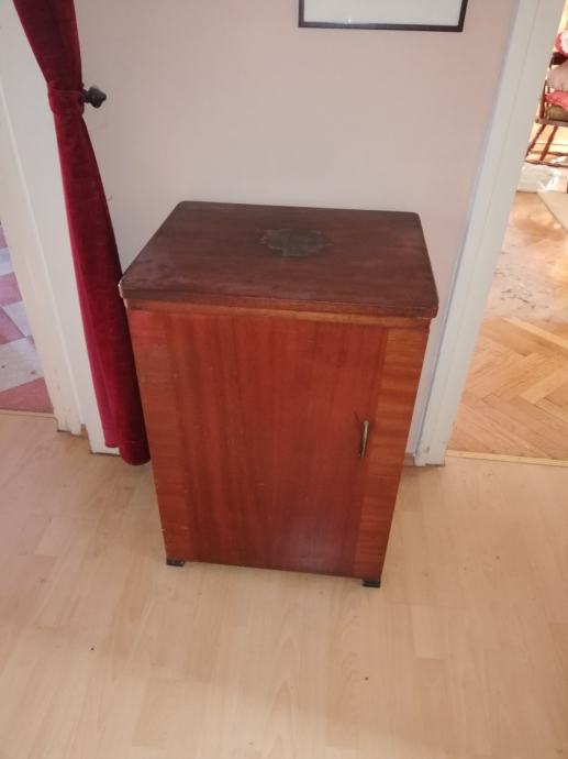 Ispravna stara šivaća mašina u drvenom ormariću. Besprijekorno radi. Jedino je gornja ploča ormarić malo izlizana.