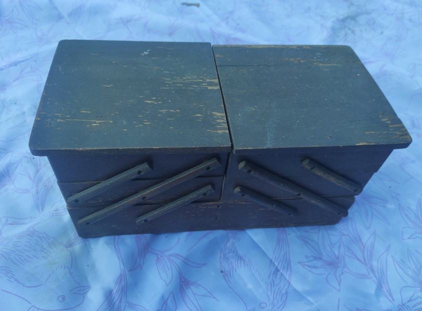 rasklopiva kutija za nakit dimenzija 10x30 cm. u nasljedstvu od bake tako da je vjerojatno starija od sto godina.