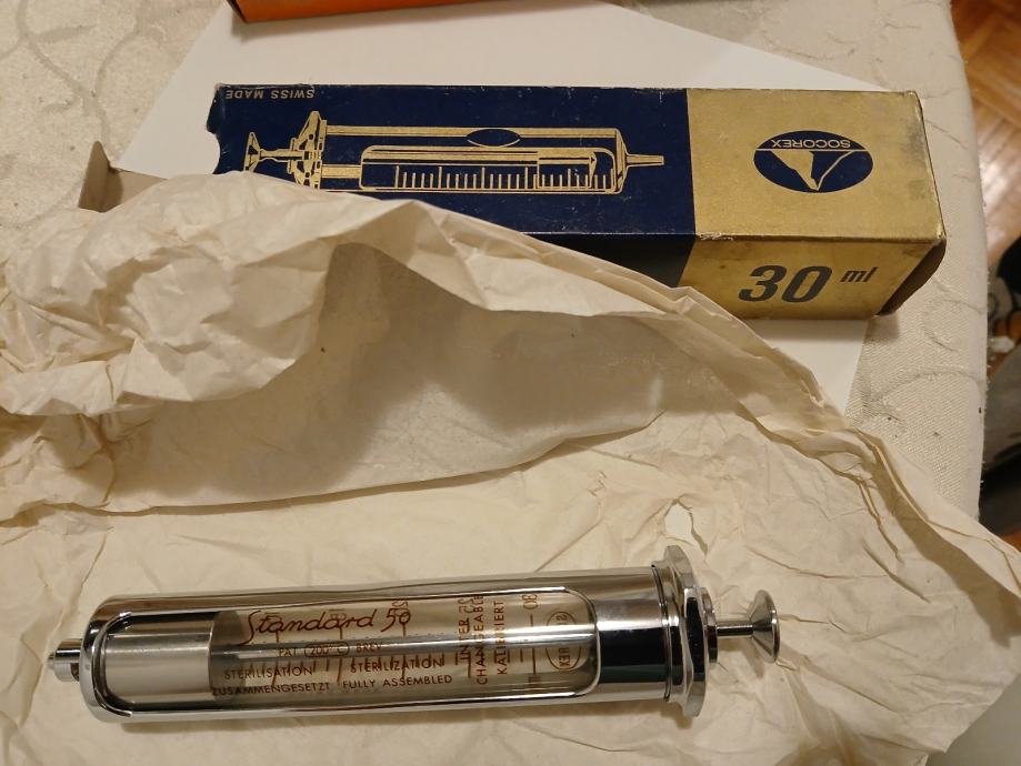 Prodajem 3 vintage medicinske šprice marke SOCREX (Swiss Made), nikada korištene (New Old Stock), u originalnim kutijama.