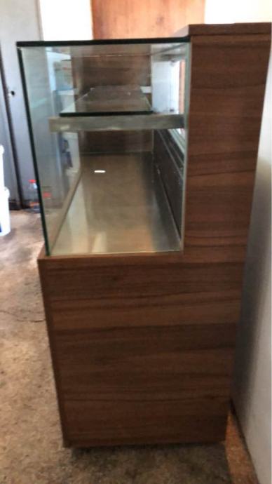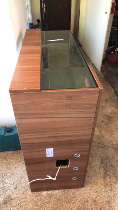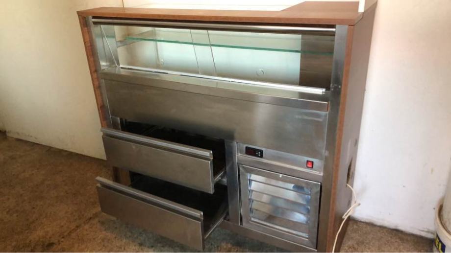 Vitrina za kolače dvije police modernog dizajna mogućnost izmjene drvenih ploha prema vašem prostoru ima dvije hladene ladice ne zauzima puno prostora naravno ispravna. dimenzije širina 120cm visina114cm dubina50cm