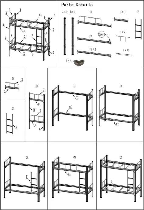 Metalni krevet na kat za odrasle osobe velike nosivosti
