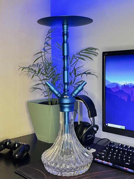 Nova zapakirana WD Hookah Alu komplet Nargila / shisha, ukljucuje bazu nargile plave boje od aluminija, crno silikonsko crijevo sa aluminijskim usnikom, kvalitetnu phunnel glavu, duge stangice za ugljen, mogucnost spajanja 2 crijeva. Jednostavna i brza za sloziti.