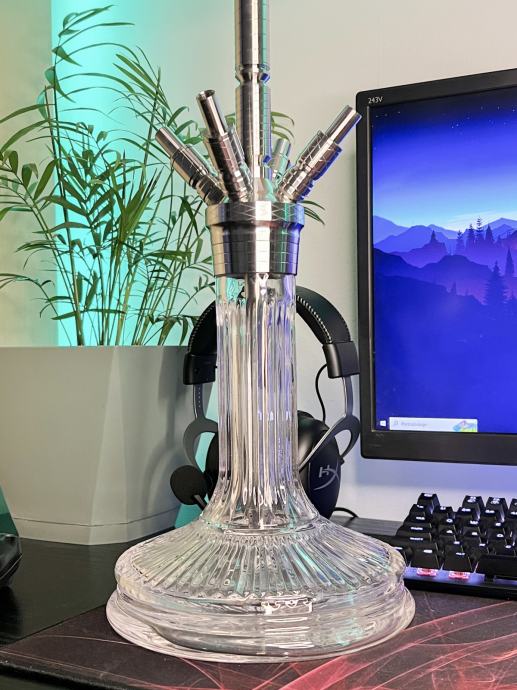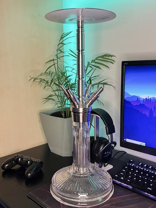 Nova zapakirana WD Hookah G48 komplet Nargila / shisha, ukljucuje bazu nargile od nehrdajuceg celika, crno silikonsko crijevo sa aluminijskim usnikom, kvalitetnu phunnel glavu, duge stangice za ugljen, te bocu od kristalnog stakla, mogucnost spajanja 4 crijeva.
