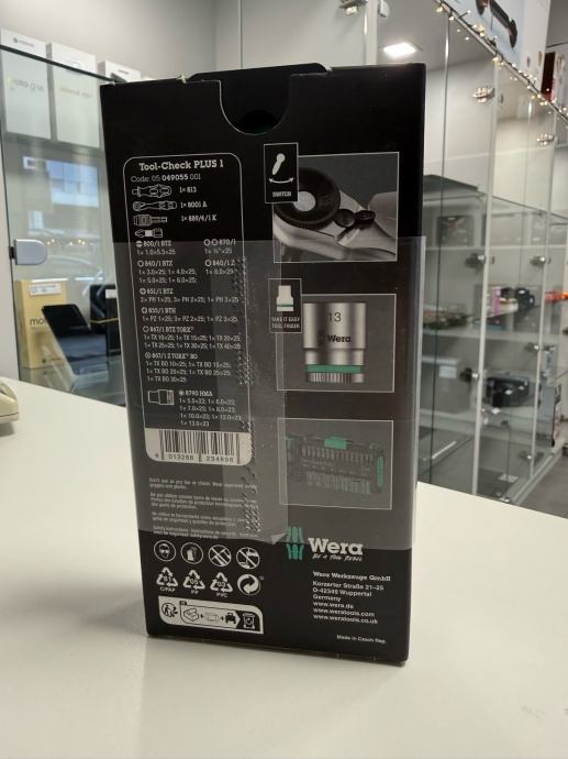Set alata Wera Tool-Check-Plus savršena je, kompaktna kombinacija alata od 39 dijelova za širok spektar aplikacija za uvrtanje vijaka, jer sadrži male čegrtaljke, držač bita, držač za ruku, 28 bitova i sedam matica u vrlo malo prostora i prikladan je za nošenje zahvaljujući praktičnoj kopči za remen. Kvalitetni držač za ručice za bitove s ručkom Kraftform omogućuje ergonomski rad, jer se sastoji od tvrdih i mekanih područja hvatanja, koja omogućuju ne samo veliku radnu brzinu, već i prijenos velikog okretnog momenta. Zyklop Mini Bit Ratchet idealan je pomagač za brzo zavrtanje čak i u uskim prostorima. Kovani čvrsti čelik čini ga posebno robusnim. Bitovi su također posebno očvrsnuti tako da su prikladni i za tvrdo zavrtanje, na primjer u limu ili metalu.