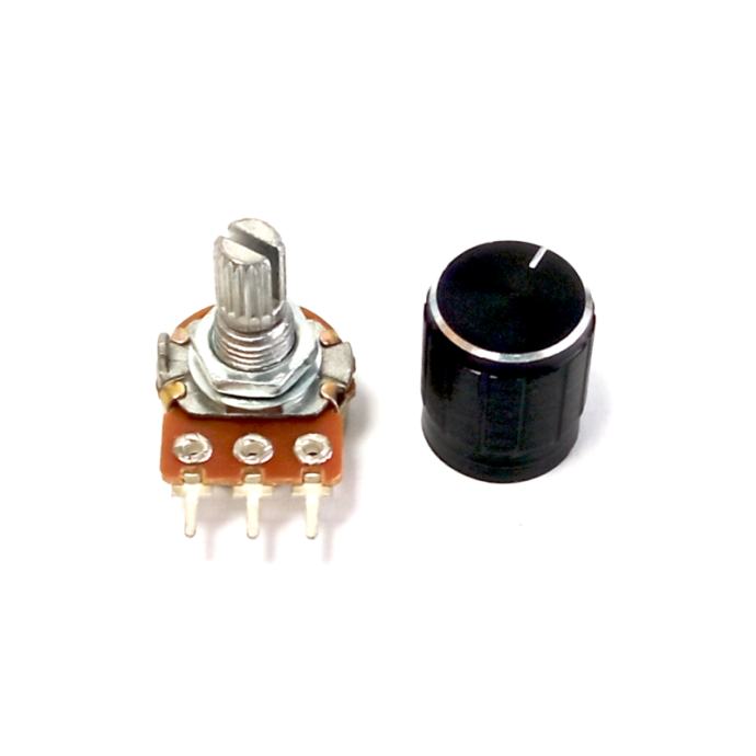 10 KΩ linearni potenciometar, s montažnim priborom i aluminijskim poklopcem, dimenzije 17x32x25 mm.