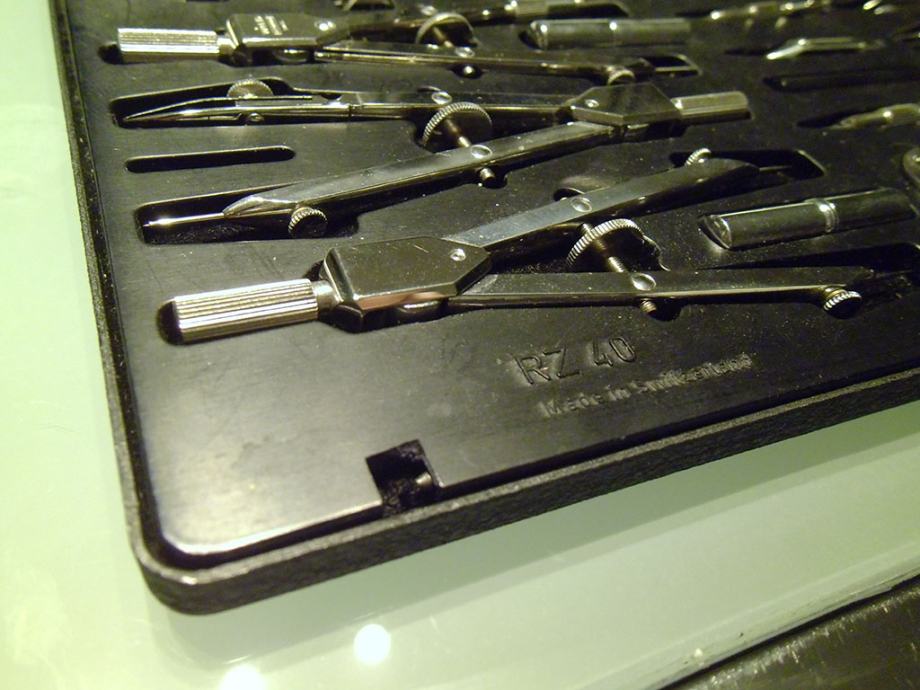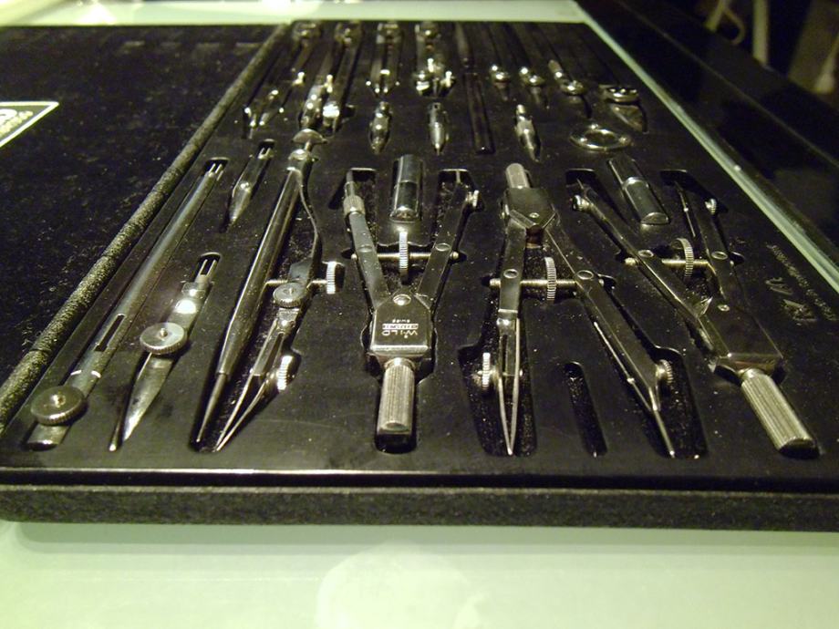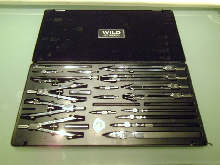 Savršeno očuvan komplet za tehničko crtanje glasovite švicarske marke Wild Heerbrugg. Radi se o njihovom najvećem i prestižnom modelu RZ 40 koji je bio i zadnji koji se proizvodio. Vrhunska izrada, predviđeno za korištenje i u ekstremnim terenskim uvjetima. Cijene na eBayu za osrednje očuvane su od 300 do 350 CHF, a ovaj je jedva korišten i u besprijekornom stanju.