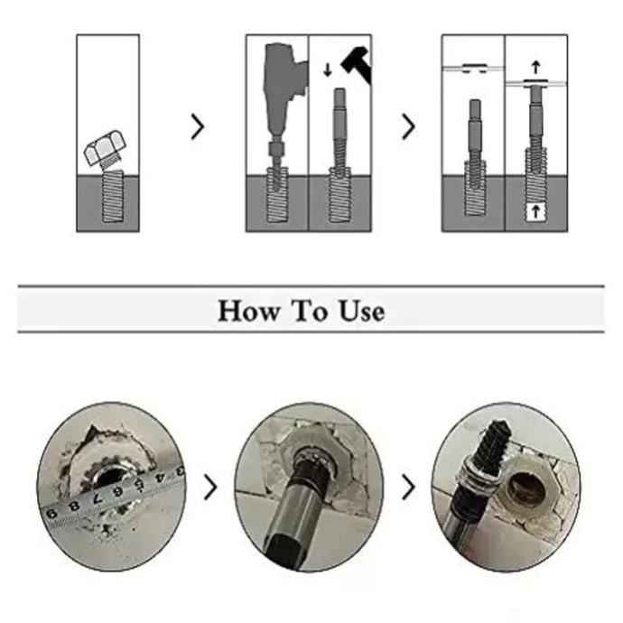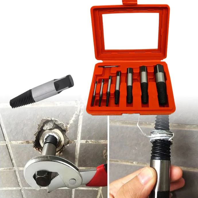 Ovaj alat za izvlačenje vijaka odgovara na sve bušilice i gedore, a dolazi s osam veličina ureznica za izvlačenje vijaka koje rade s bilo kojim alatom za izvlačenje vijaka od 3-20 mm. Ovaj jednostavan, ali učinkovit alat za izvlačenje koristi se za okretanje oštećenog vijka u smjeru suprotnom od kazaljke na satu dok se vijak ne otpusti.