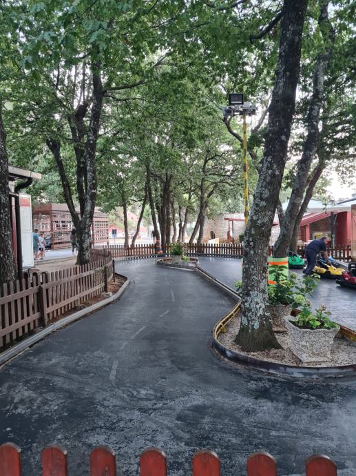 DRVENA OGRADA KOJA SE SADA NALAZI OKO PISTE ZA ELEKTRIČNE MINI AUTOMOBILE