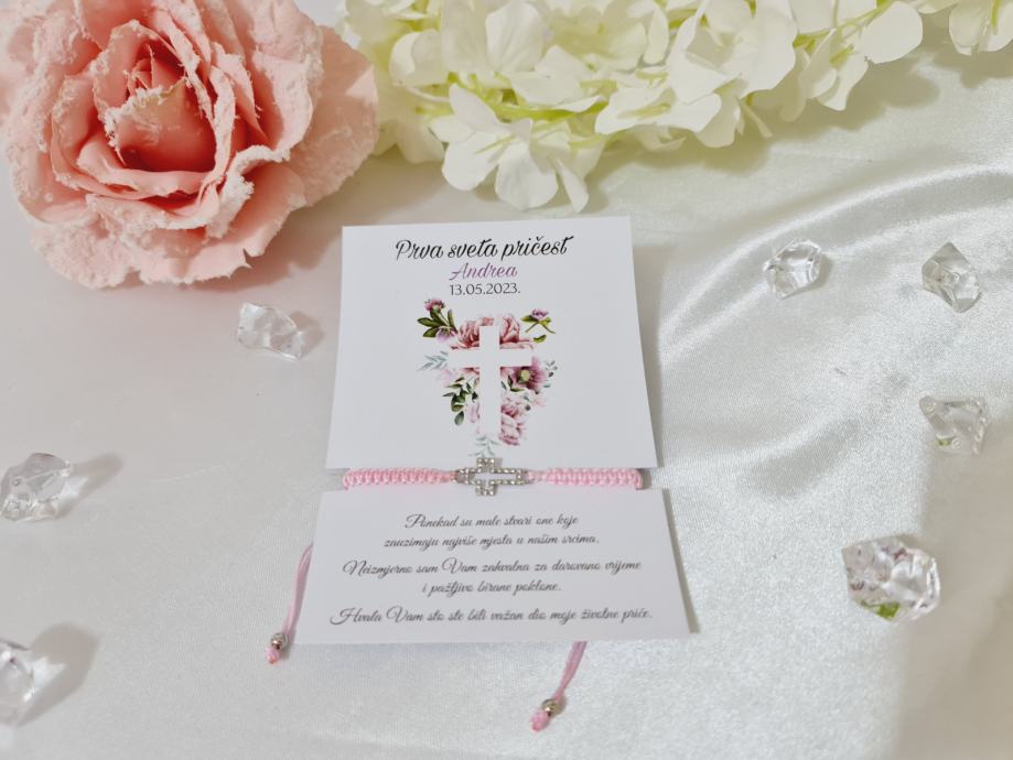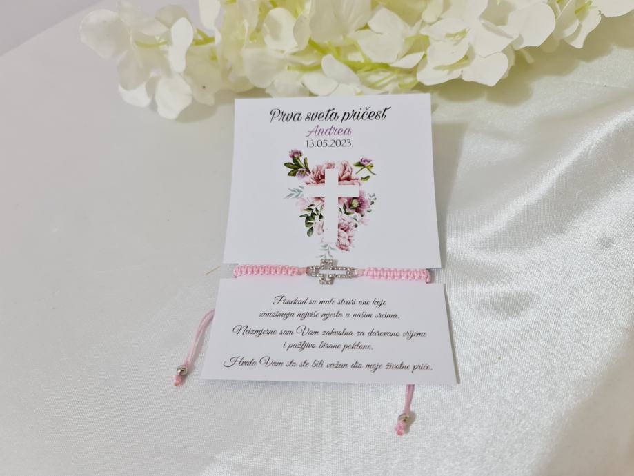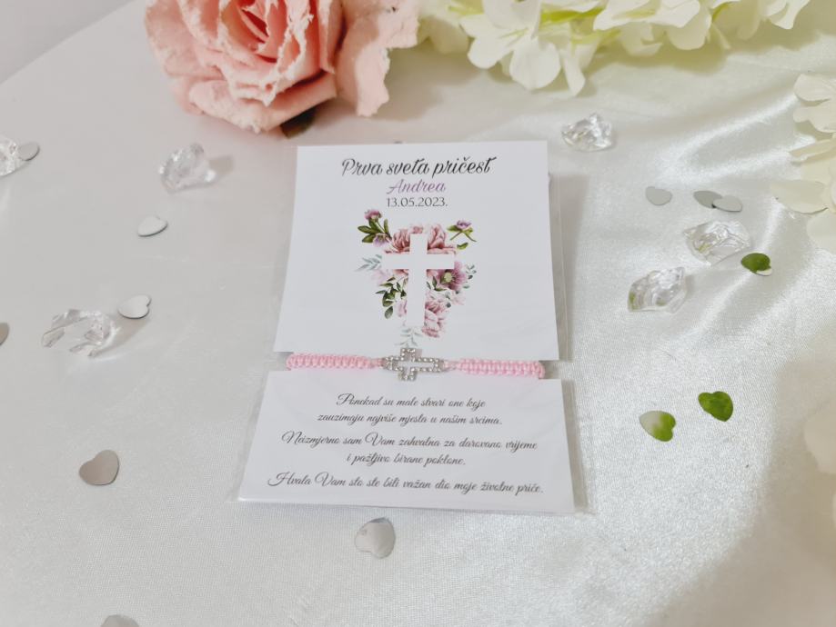 Zahvalnice za goste, narukvica sa križićem, za Prvu pričest