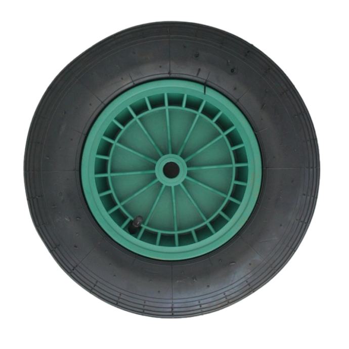 Kotač omogućava jednostavno manevriranje i ravnomjerno raspoređivanje težine, što smanjuje napor pri radu i povećava učinkovitost pri transportu materijala. Idealna zamjena za istrošene ili oštećene kotače građevinskih kolica.