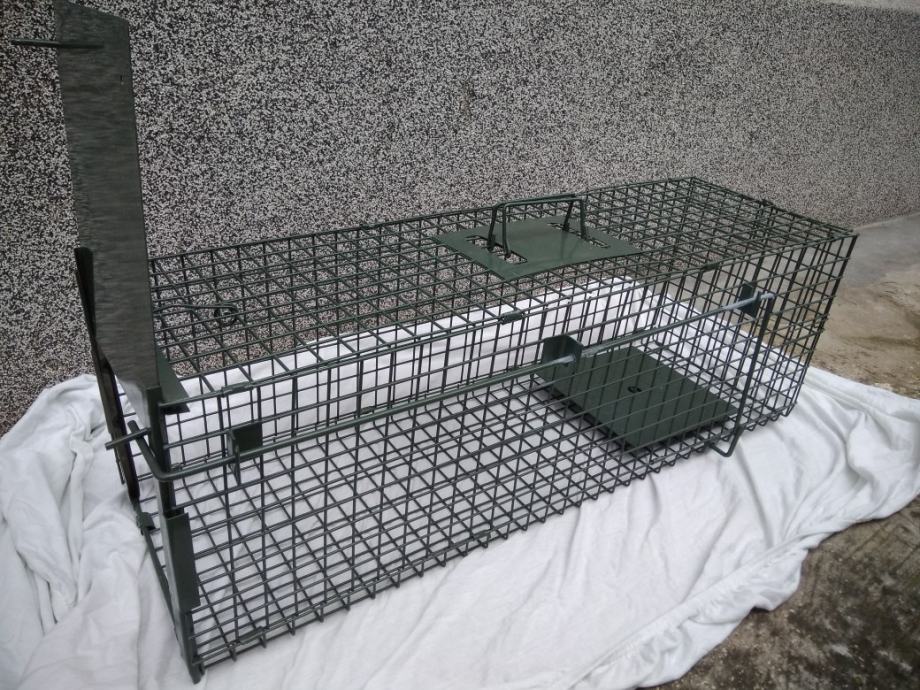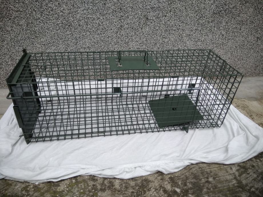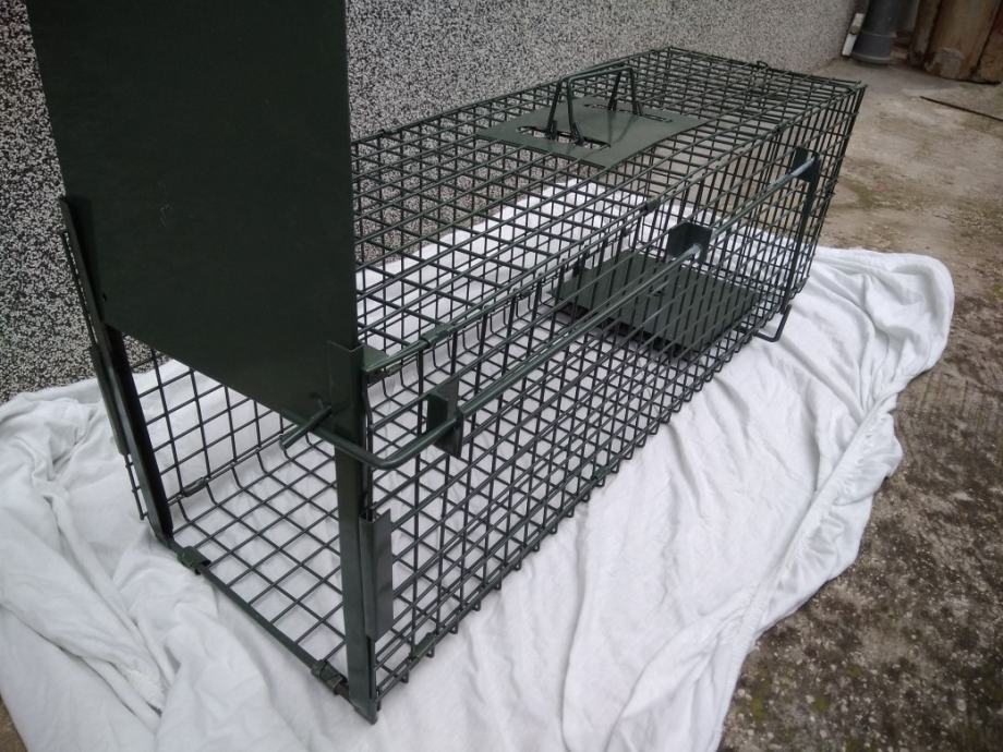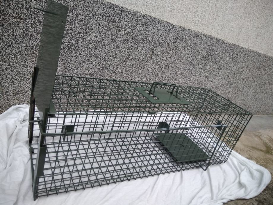 Zamka s jednim vratima D80cm Š25cm V27cm za mačke,kune,lasice ili šta god drugo.Osobno sam ju koristio da se riješim kune na tavanu(uspješno) i jedne mačke za sterilizaciju i to je bilo sve.Dakle kao nova ali nemogu oglasit kao novu,stanje vidljivo na slikama.Samo osobno preuzimanje u Novom Vinodolskom.Cijena fixna!!!