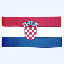 Državna zastava Republike Hrvatske. Izrađena od 100% polyesterskog materijala. Ne skuplja se i ne blijedi pri svim vremenskim uvjetima ili pranju. Ima šivani grb. Nema ukrasne rese.
