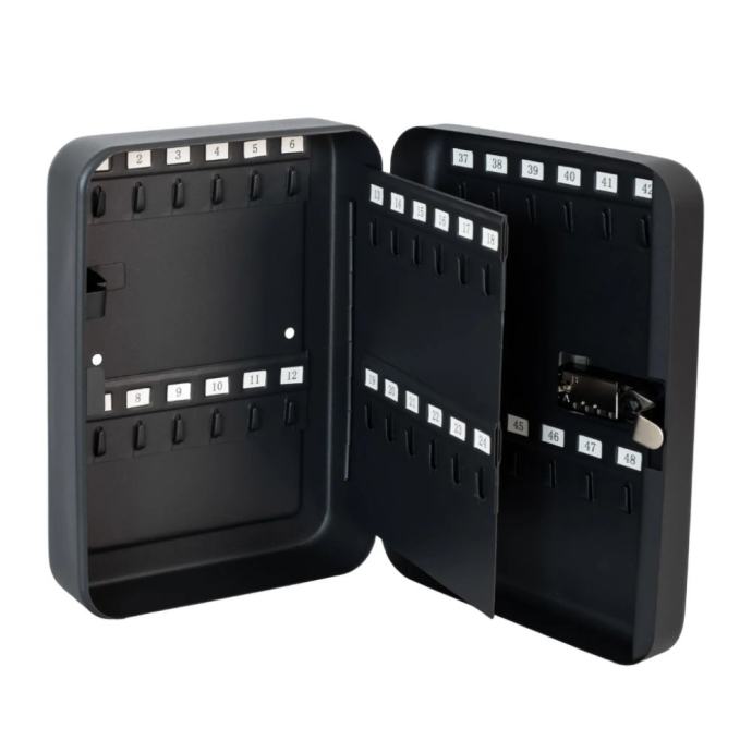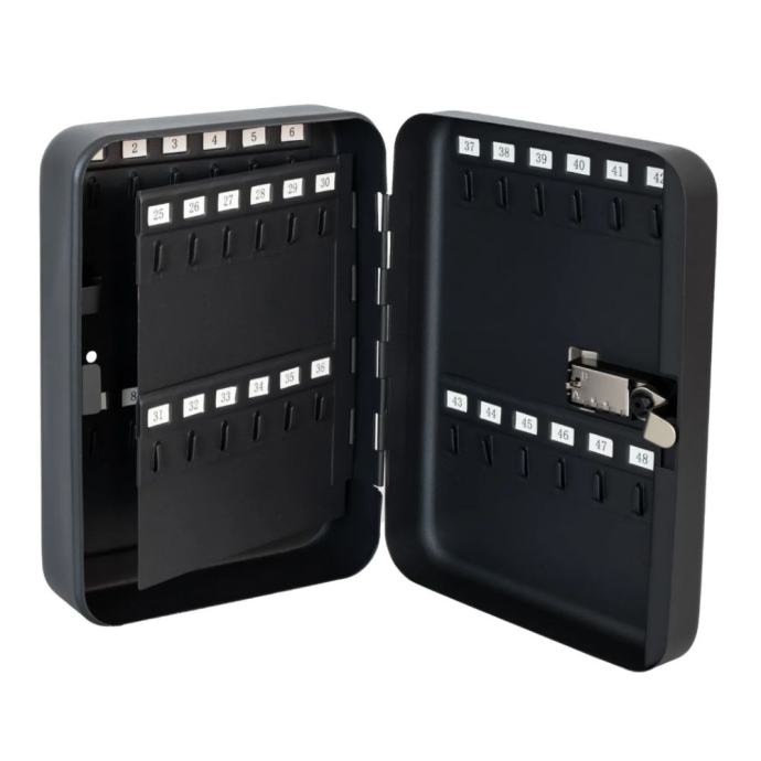 Tražite li praktičan i siguran način za pohranu ključeva u poslovnom prostoru? Zaštitna kutija za ključeve s kombiniranom bravom osmišljena je kako bi tvrtkama poput hotela, rent-a-car agencija i tvrtki za upravljanje nekretninama osigurala lako i uredno rukovanje velikim brojem ključeva. S kapacitetom od 48 kuka raspoređenih na 8 fiksnih nosača, svaki ključ ima svoje označeno mjesto, čime se znatno olakšava organizacija i svakodnevna uporaba.