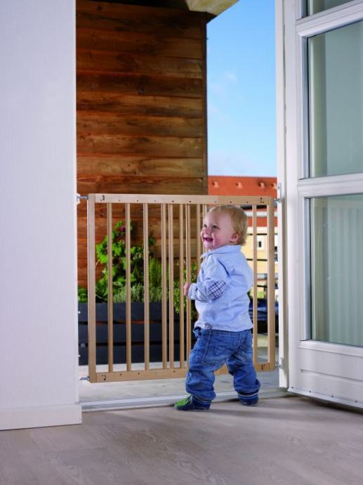 Zaštitna ograda je izrađena od drveta stoga je iznimno kvalitetna i dugotrajna. Zaštitnu ogradu je moguće premještati više puta. Vrlo jednostavna montaža na vrata s pomoću vijaka. Montaža na stepenice pomoću 4 vijka radi veće sigurnosti. Vrata se mogu otvarati u oba smjera do 200 stupnjeva i imaju zaštitni mehanizam koji onemoguće djeci da ih otvore.