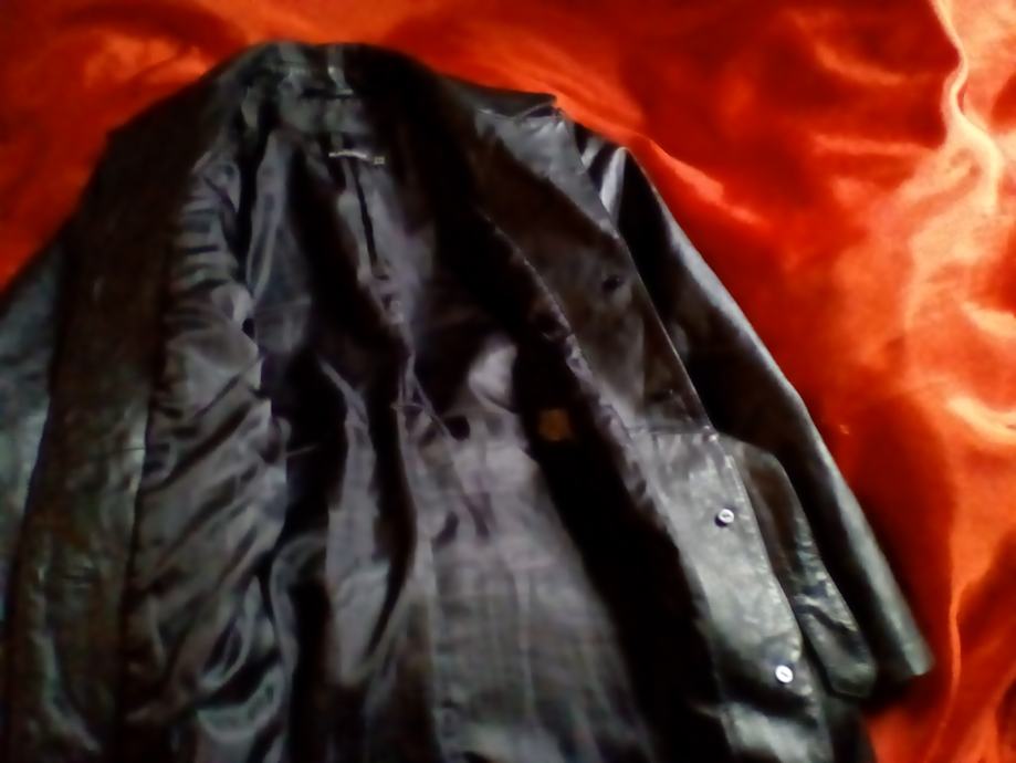 Kožna jakna s remenom,zatvaranje s dugme, 2prednja džepa, širina ramena 44cm , dužina rukava 60cm,ukupna dužina 100-110cm,pazuha 50cmdodatno remen za struk