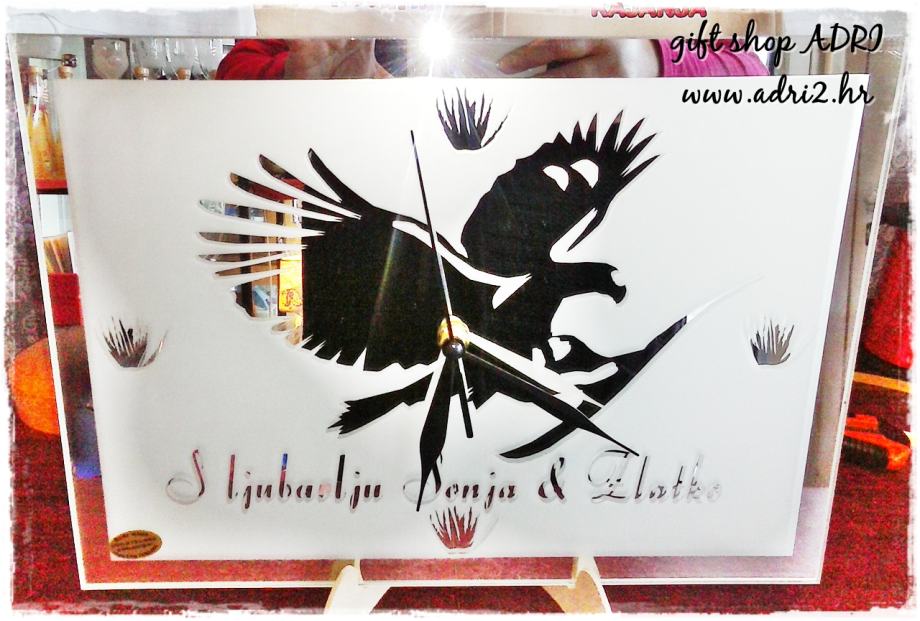 Sat dimenzija 25 x 35 cm , brušeno ogledalo.