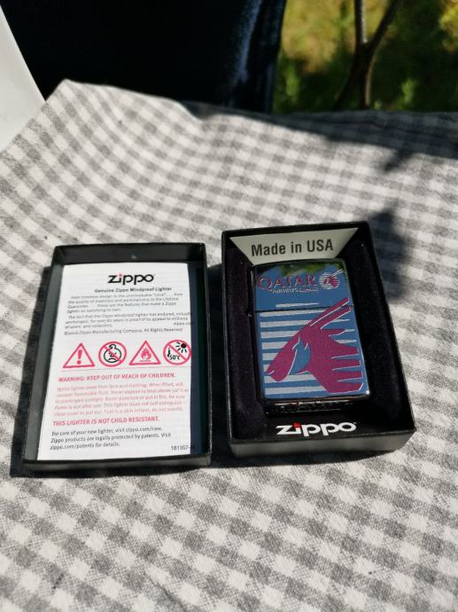 Prodajem novi Zippo upaljač sa logom avio kompanije Qatar Airways, kupljen na aerodromu u Dohi. Bez plina.