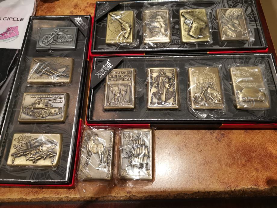 Set sadrži 4 upaljača s 4 različita reljefna motiva (motiv konja, motiv starog aviona, i dva upaljača s motivom motora). Dva su u starinski zlatnoj boji te dva u mat srebrnoj boji. Upaljači su zaista divno izrađeni, kompaktni, čvrsti. U potpunosti su izrađeni od metala. Moći ćete neometano koristiti upaljač čak i kada je vjetrovito vrijeme. Upaljaci su "look like" zippo....
