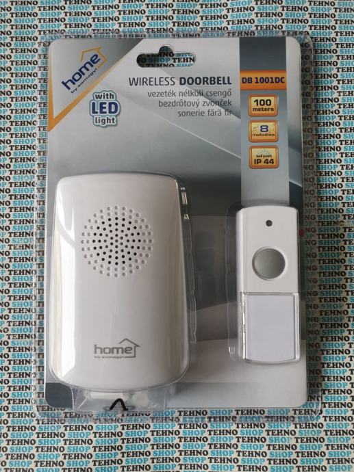 Bežično kućno zvono, domet do 100 metara, 8 različitih polifonih ugodnih melodija, plavo trepereće svjetlo uz zvučni signal, radna frekvencija 433.9 MHz, vanjski gumb zaštićen po standardu IP44, zaštita od interferencije, napajanje 2 x 1.5V AA baterije ( nisu uključene u pakiranje ), napajanje gumba 1 x 3V CR2032 baterija