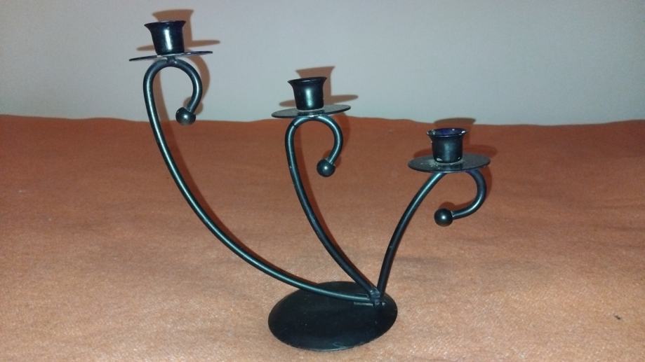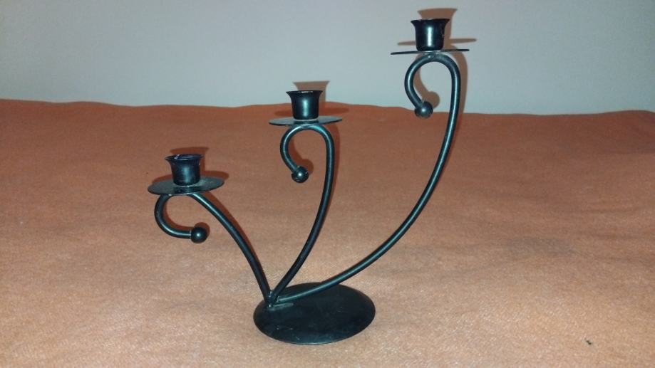 Crni metani svijećnjak za 3 svijeće, u dobrom stanju.