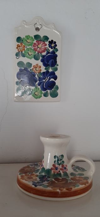 Keramički svijećnjak i ukrasna pločica za rezanje.