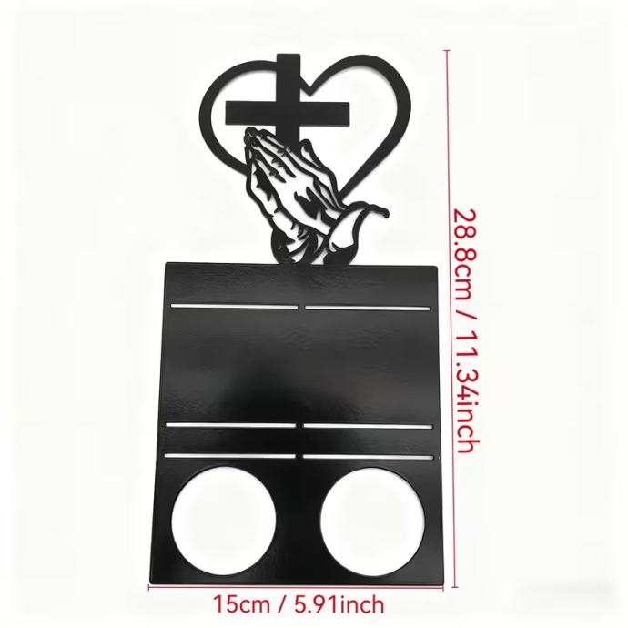 Metalni kršćanski svijećnjak za molitvu s rukama koje se mole i križem