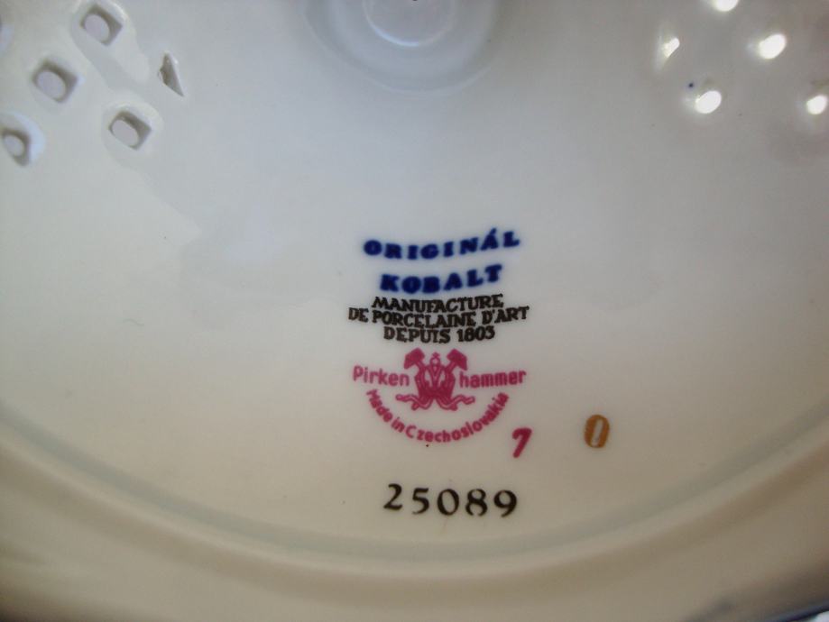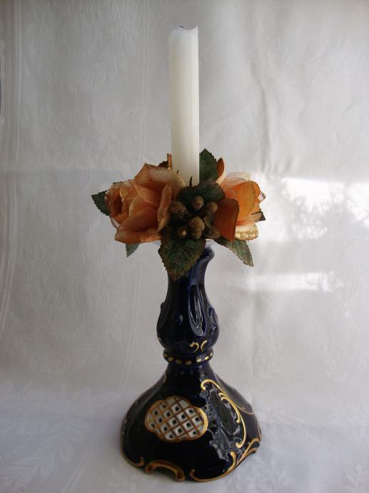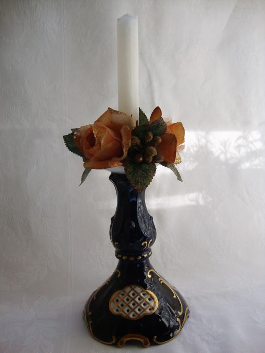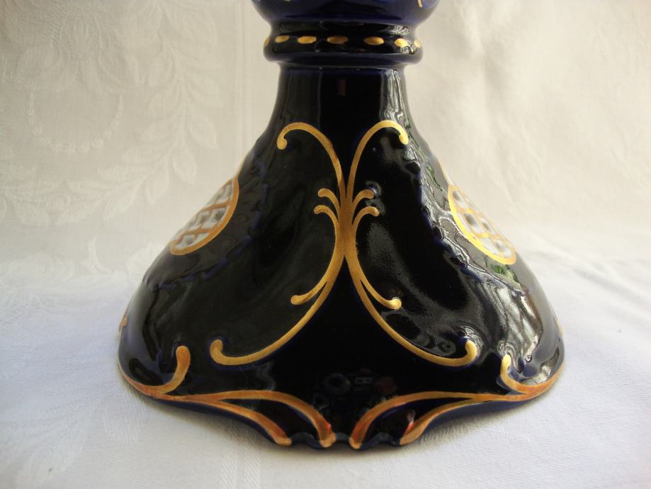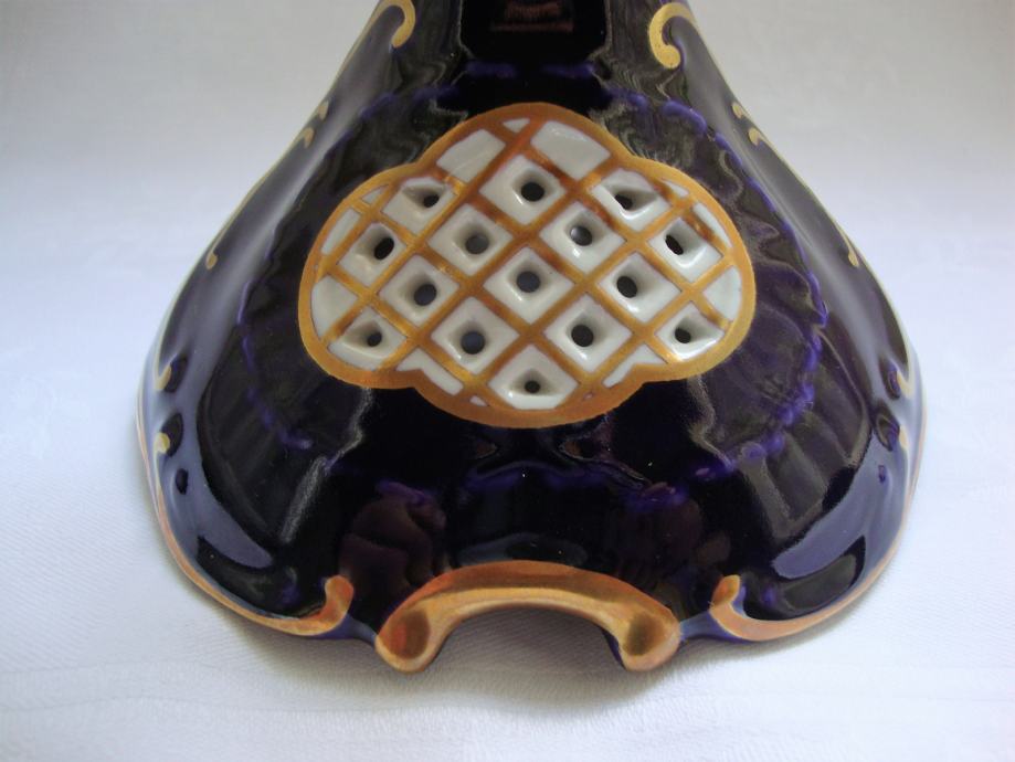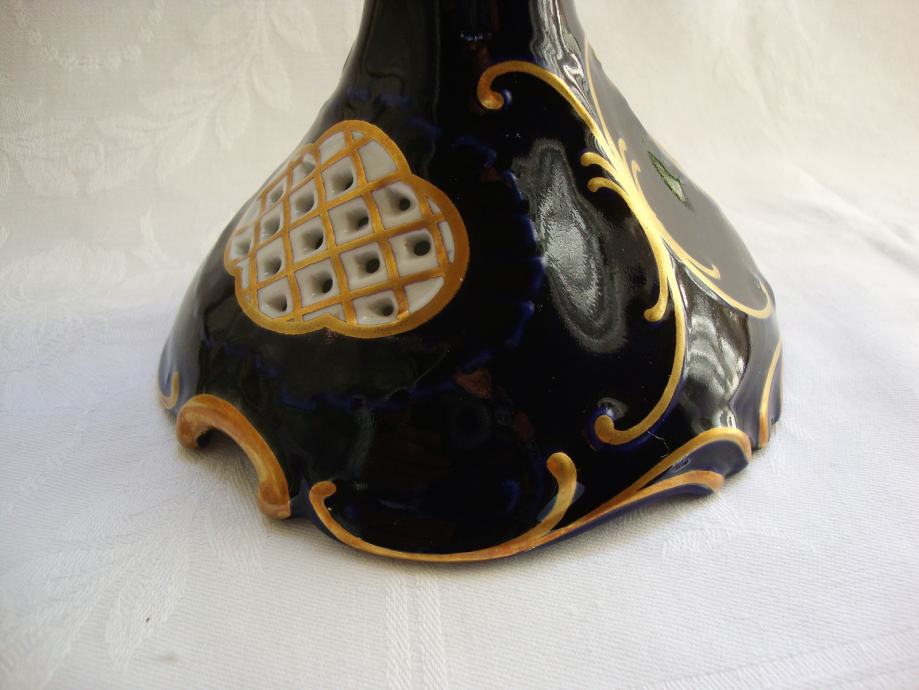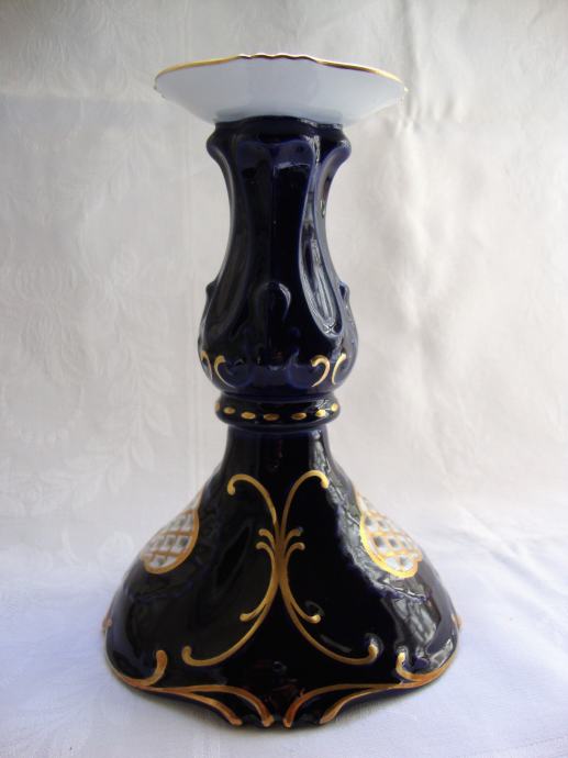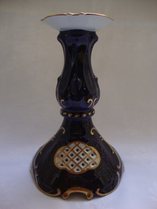 Predivni kobaltni svijećnjak brendirani čeki porculan marka Pirkenhammer ručno oslikan pozlatom
