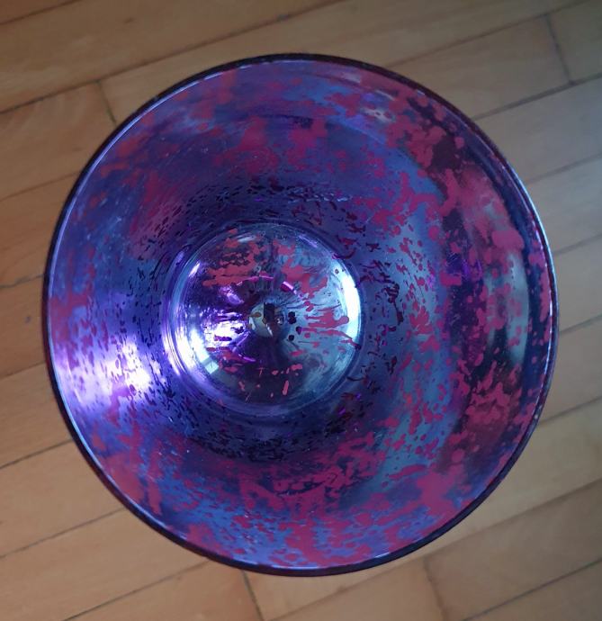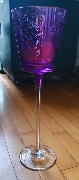 Visoki srebrno-ljubičasti dekorativni stakleni kalež.