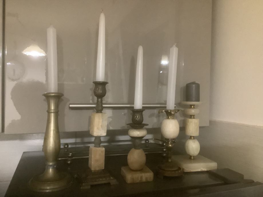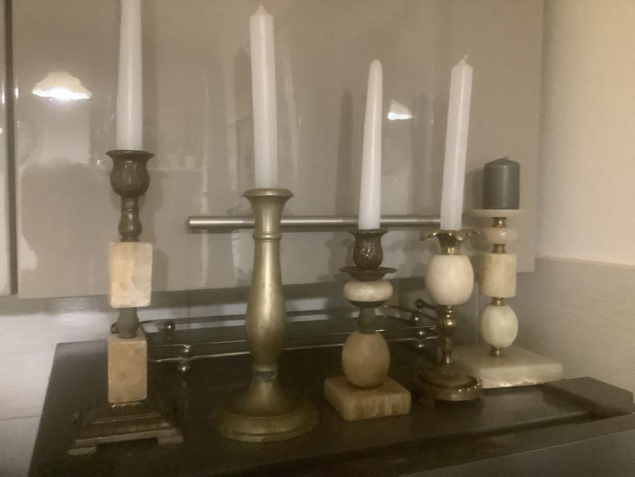 Nekoliko starih mesinganih svijećnjaka kombiniranih sa onixom /poludragi kamen/ - kom 30 eur
