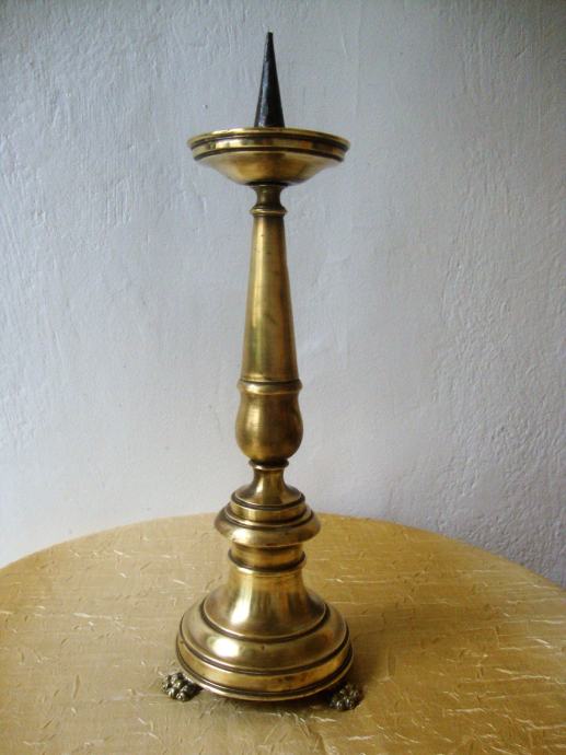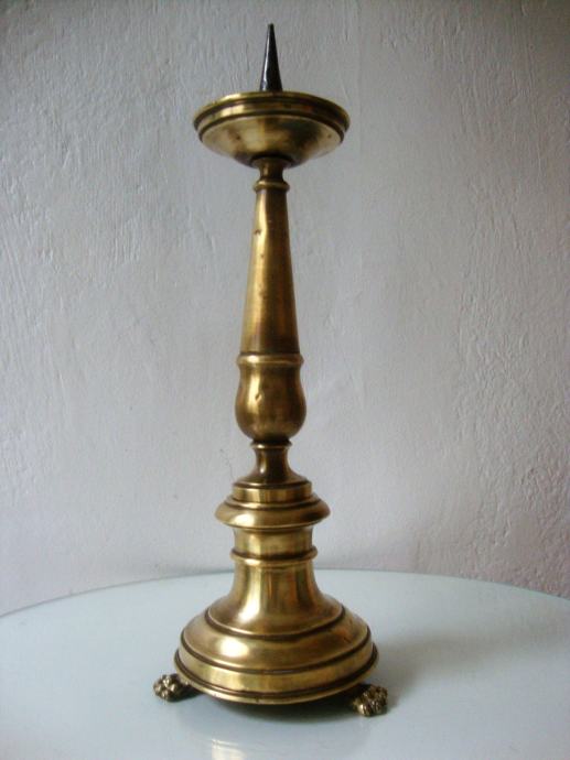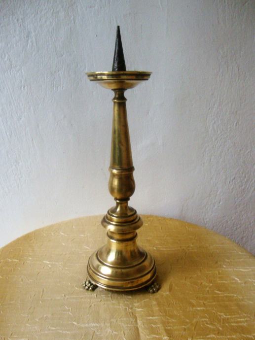 visina 34,5 cm sa šiljkom za svijeću a bez šiljka 28,5 cm , otvor za svijeću 7,5 cm , donja širina raspon nogica 12 cm