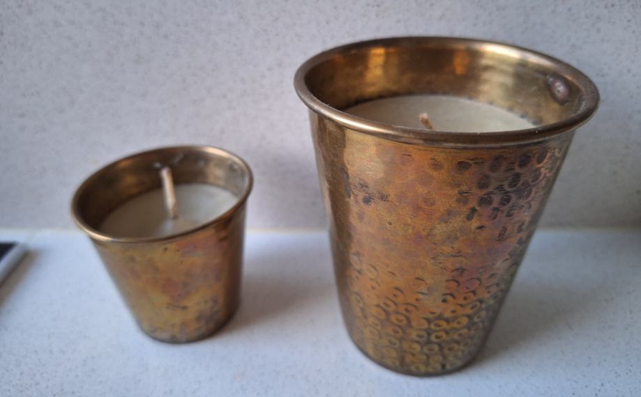 Prodaju se dvije svijeće (jedna manja i jedna veća) u posrebrenim posudama, nikada korištene.