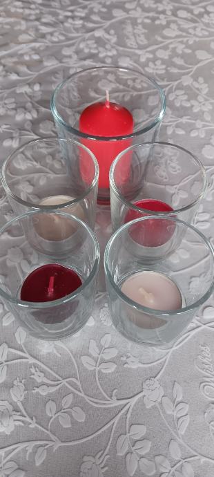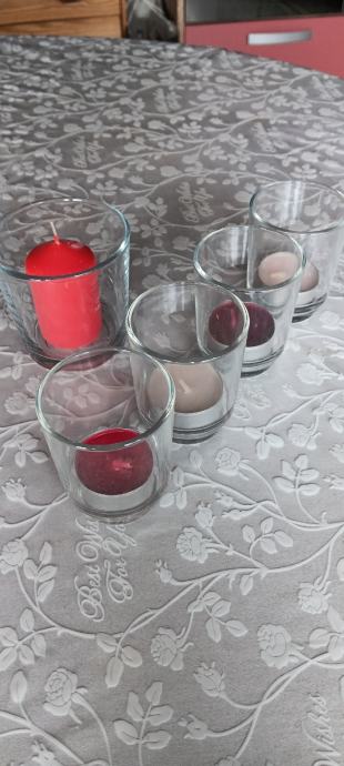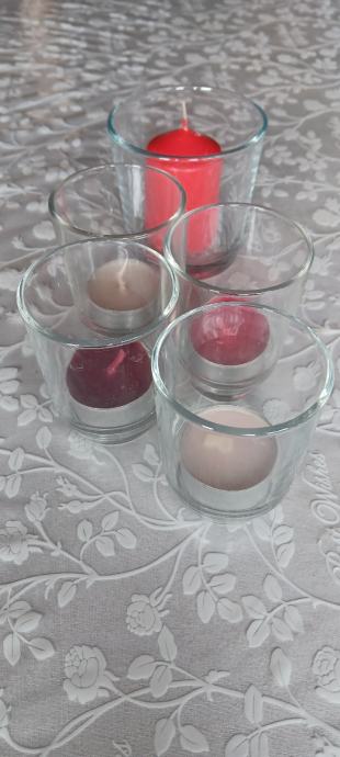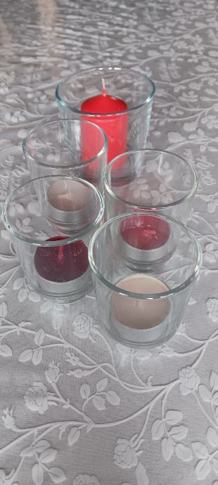 Lot od 5 staklenih svijećnjaka, jedan veći ( IKEA )+ 4 manja ( no brend ).