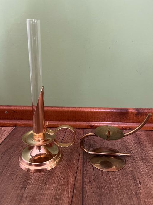 Oba svijećnjaka 10€, cijena po komadu 7€. Desni je dosta kvalitetniji i ima dosta izražene patine zbog godina dok je lijevi modernijeg izgleda.